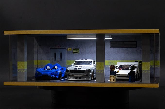 1/24 Scale Die-cast Car Diorama Display Case with Clear Acrylic Cover and LED Lighting for Diecast Model Cars, Lego Speed Champions Cars, 3 Parking Space D5 Style (1/24-3PD5)