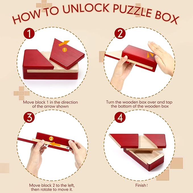 About This 2-Piece Set: You will receive 2 red Puzzle Boxes. The rectangular one measures approximately 5.7 x 3 x... Read more
