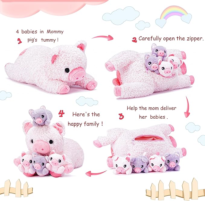 About This Four Toys In One: The stuffed mommy pig comes with a surprise in her belly, 4 babies that... Read more