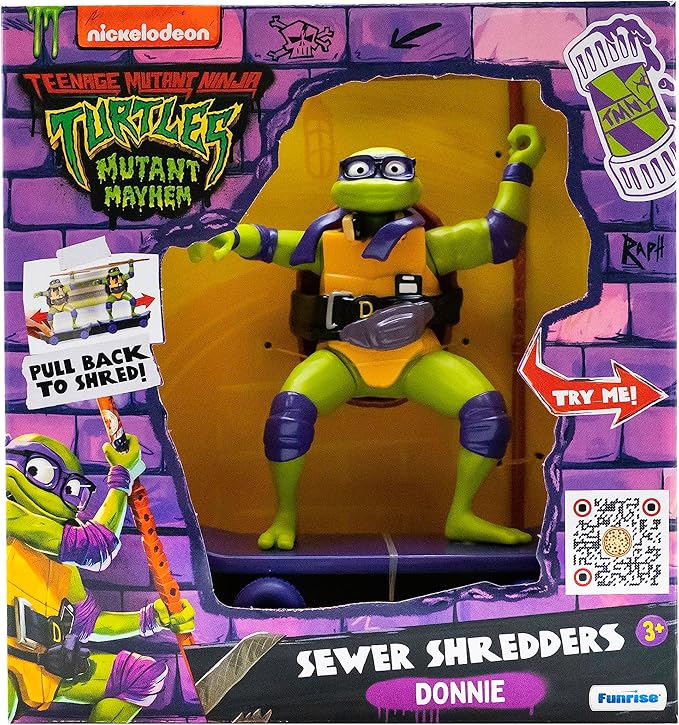 Teenage Mutant Ninja Turtles Toy, Donatello Sewer Shredder Pullback Skateboard, Mutant Mayhem TMNT Collectible Ninja Turtle, Ages 3+