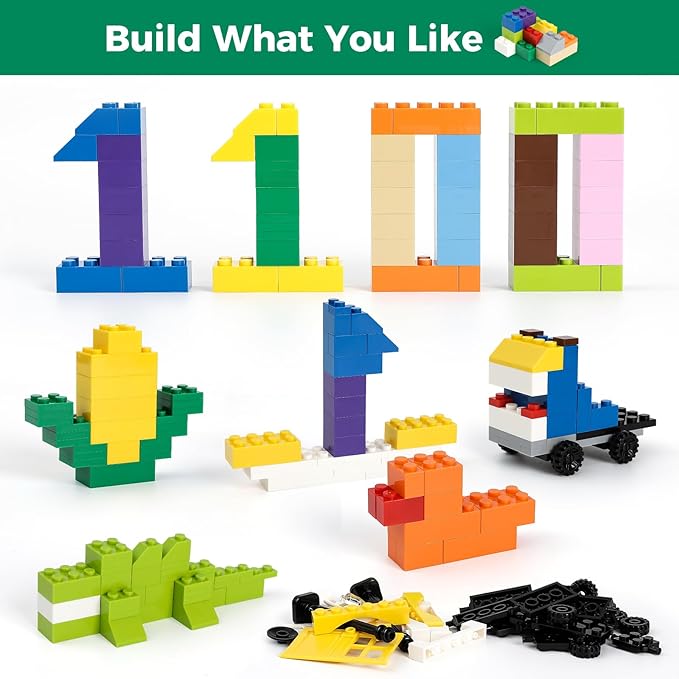 1100 Pieces Building Blocks, Compatible with All Major Brands, Classic Bulk Blocks, Includes Wheels, Door, Window, Street Lights