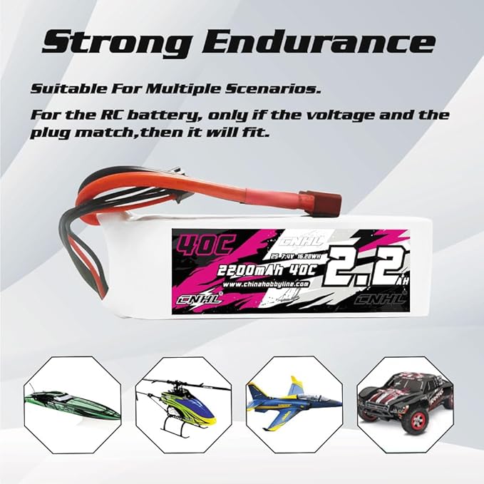 CNHL 2S Lipo Battery 2200mAh 40C 7.4V with T Plug for RC Car Truck Racing Truggy Buggy Boat RC Vehicles(2 Packs)