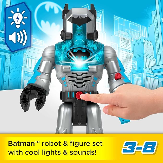 Fisher-Price Imaginext DC Super Friends Batman Toy Insider & Exo Suit 12-Inch Robot with Lights Sounds & Figure for Ages 3+ Years, Defender Grey