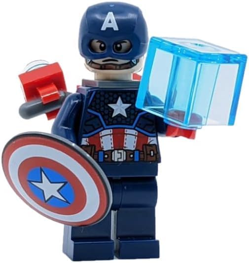 About This INCLUDED - Captain America Minifgure, Shield, Jetpack, Tesseract, Mjolnir, Blue spongy LEGO cape, and a TheBrickPeople Tile! SMALL... Read more