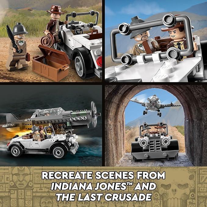 LEGO Indiana Jones and the Last Crusade Fighter Plane Chase 77012 Building Set, Featuring a Buildable Car Airplane Toy, 3 Minifigures Including Jones, Birthday Gift for Kids 8-12 Years Old