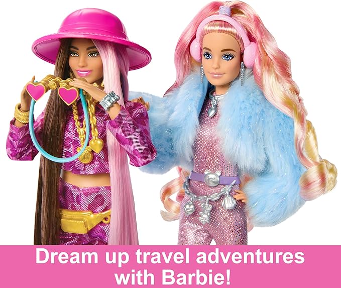 Barbie Extra Fly Doll with Snow-Themed Travel Clothes & Accessories, Sparkly Pink Jumpsuit & Faux Fur Coat