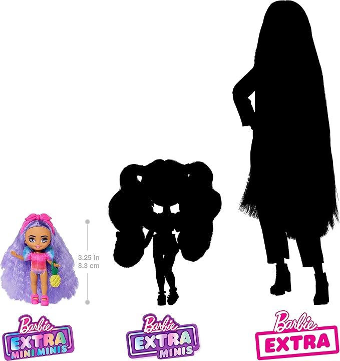 Barbie Extra Mini Minis Travel Doll with Lavender Hair, Tie-Dye Swimsuit with Puff Sleeve & Beach-Themed Accessories