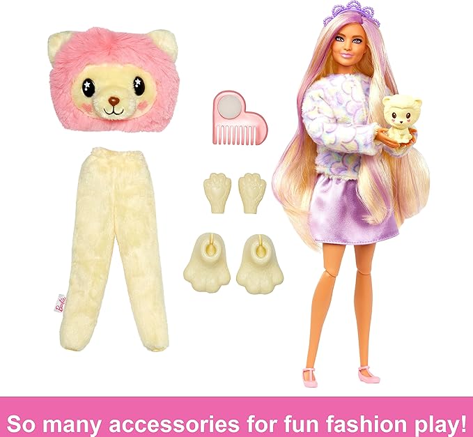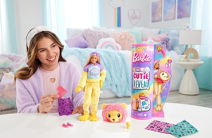 Barbie Cutie Reveal Doll with Blonde Hair & Lion Plush Costume, 10 Suprises Include Accessories & Pet (Styles May Vary)