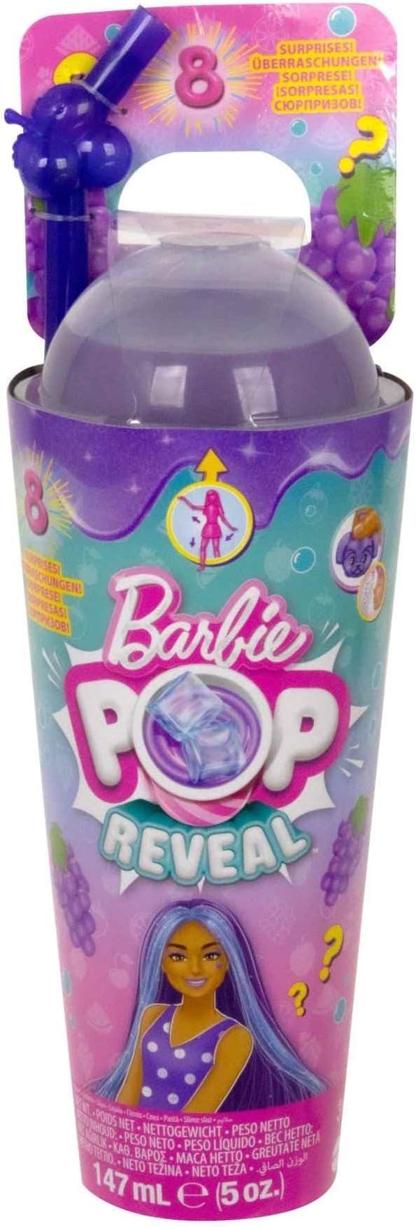 Barbie Pop Reveal Doll & Accessories, Grape Fizz Scent with Purple Hair, 8 Surprises Include Slime, Color Change & Puppy