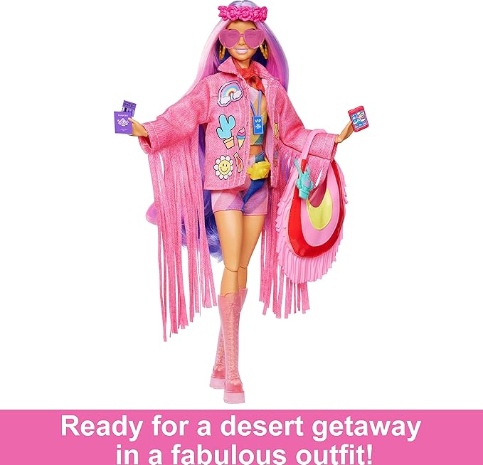 Barbie Extra Fly Doll with Desert-Themed Travel Clothes & Accessories, Fringe Jacket & Oversized Bag