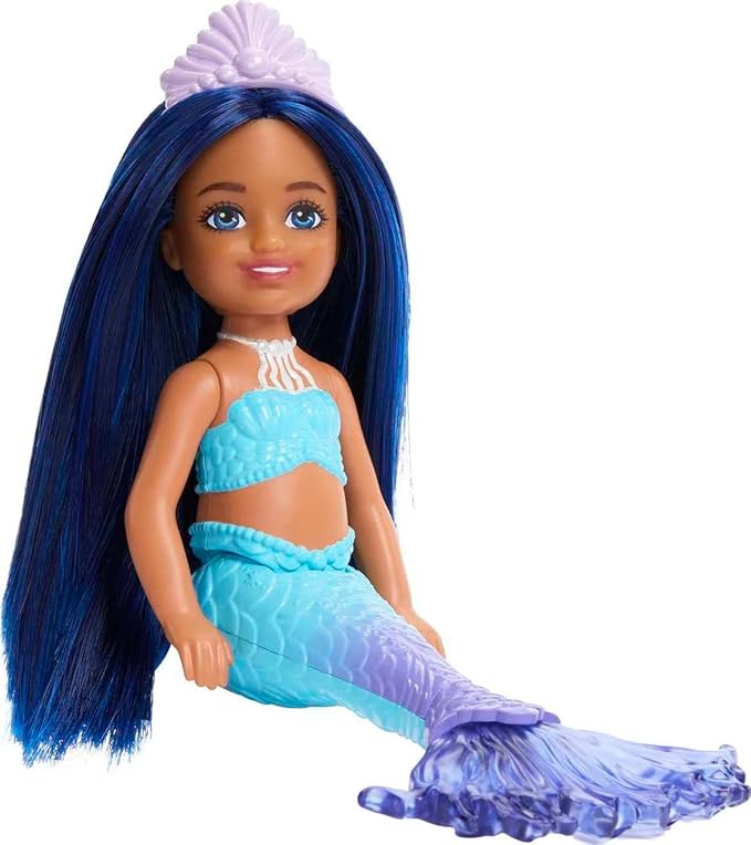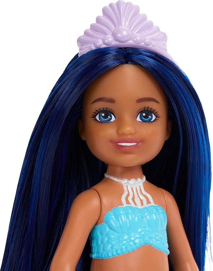 Barbie Mermaid Chelsea Doll with Midnight Blue Hair and Ombre Tail, Mermaid Toys, Crown Accessory