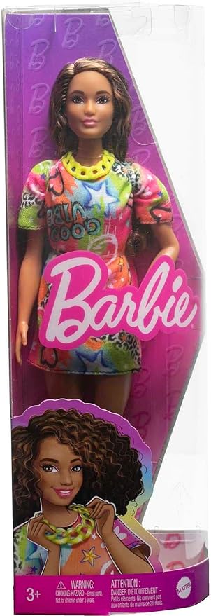 Barbie Fashionistas Doll #201, Athletic Body with Curly Brunette Hair, Graffiti-Print Dress & Accessories Including Boots & Chain Necklace