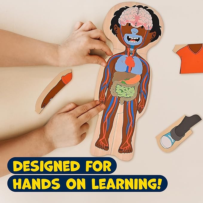 Kidzlane African American Boy Wooden My Body Puzzle for Toddlers - 29 Piece Girls Anatomy Puzzle Kid Play Set - Anatomy for Kids, Skeleton Toys for Kids Ages 3 Plus