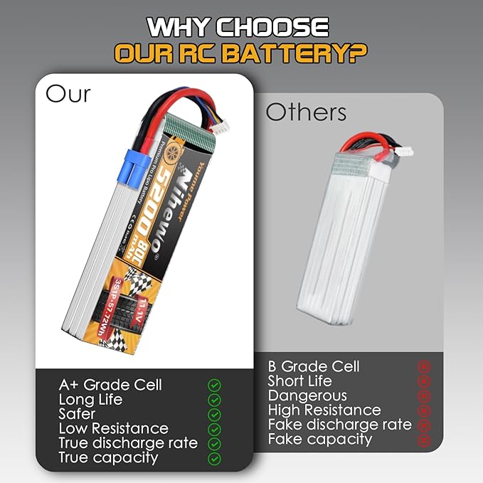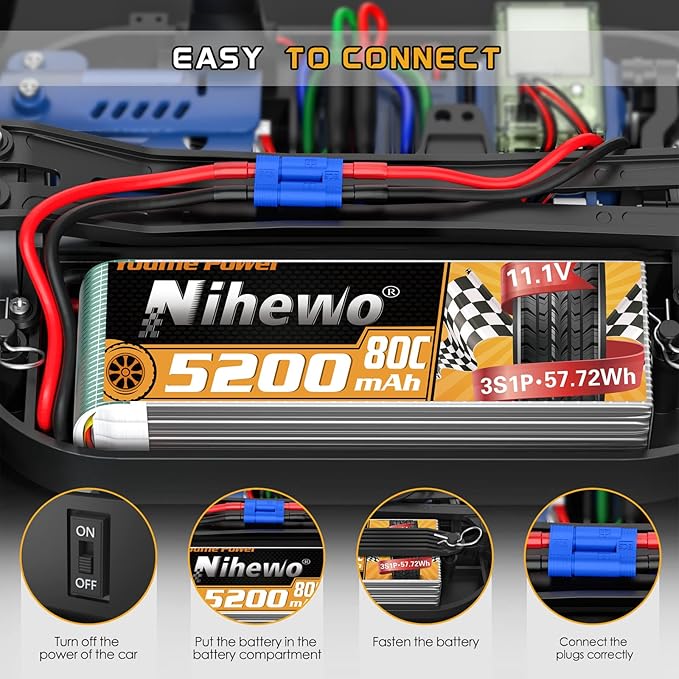 About This 【What You Get】-2 Packs x Nihewo 11.1V 3s lipo 5200mAh 80C EC5 plug 【3S Battery Dimensions and Weight】-Nihewo... Read more