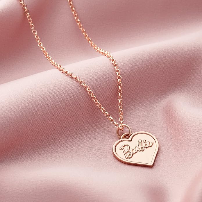 About This This chunky chain necklace features the Barbie logo embossed on a solid heart pendant, on a 16 inch... Read more