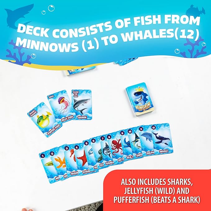 Continuum Games Kingfin Chomped or Be Chomped Card Game for Kids Teens and Adults, 3 to 6 Players, Ages 6 and Up