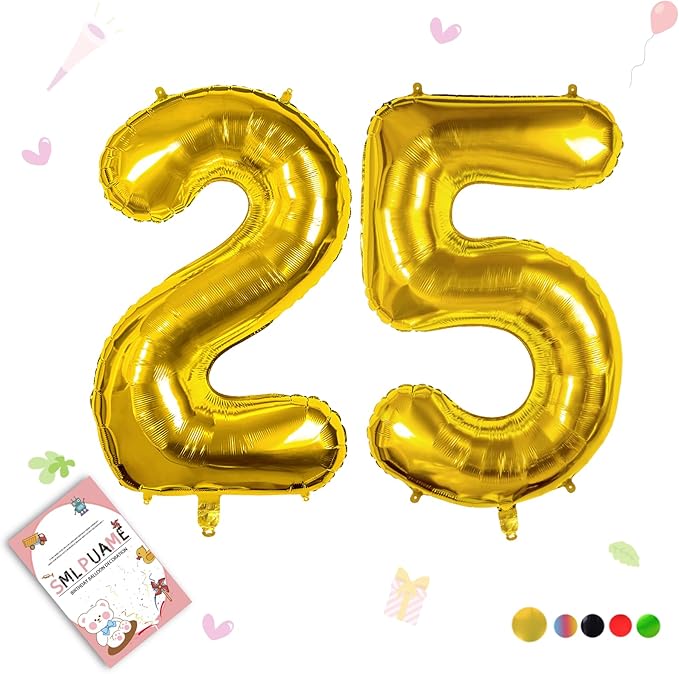 Smlpuame 40 inch Number Balloon 0-9 Gold Large Number 25 Balloons,Digital Balloons for Birthday Party Celebration Decorations Supplies, Helium Foil Number Balloons for Wedding Anniversary