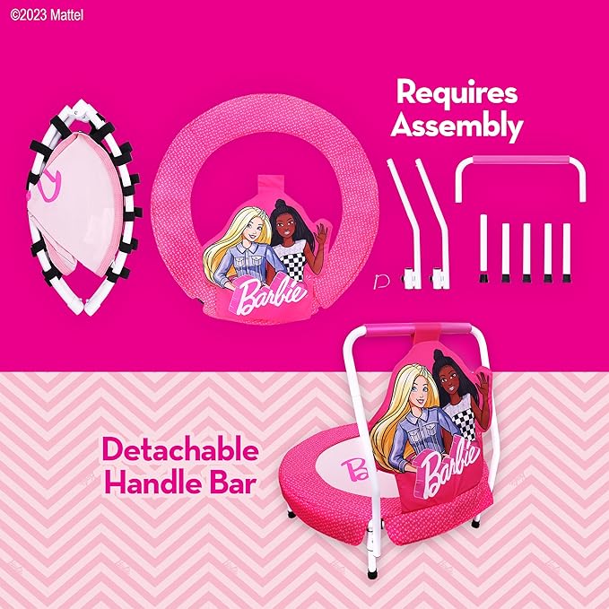 Barbie Hearts Indoor Mini Trampoline with Handle for Toddlers