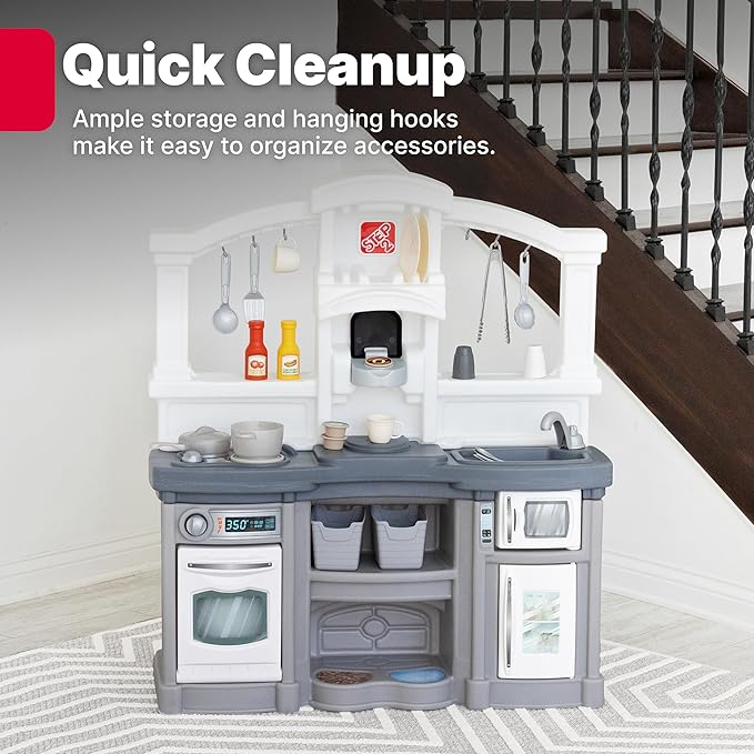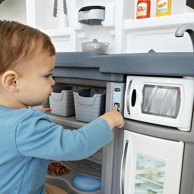 Step2 Fun with Friends Kids Kitchen Playset, Indoor/Outdoor Kitchenette, Interactive Play with Lights and Sounds, Durable Plastic, Includes 25 Piece Toy Accessories, Toddlers 2+ Years Old, Gray