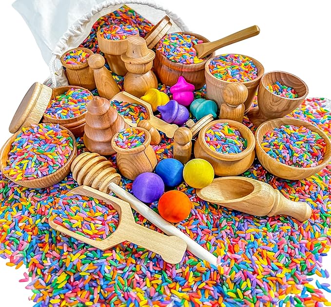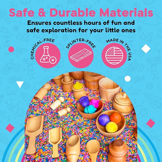 Wooden Tool Set for Sensory Bin (30 Piece), Child-Sized Montessori Sensory Toys for Developing Fine Motor Skills, Smooth Wooden Toys, Bin Scoops and Tools