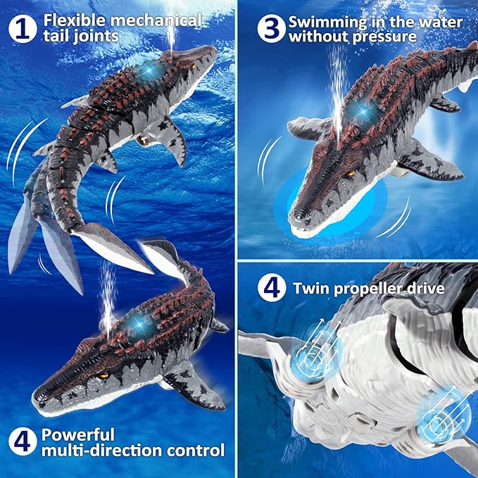 Mosasaurus Dinosaur Toys, Upgrade Remote Control Water Toy, Pool Toys for Kids Ages 4-8, RC Dino with Light and Spray Water for Swimming Bath Lake Ocean Christmas Birthday Gift