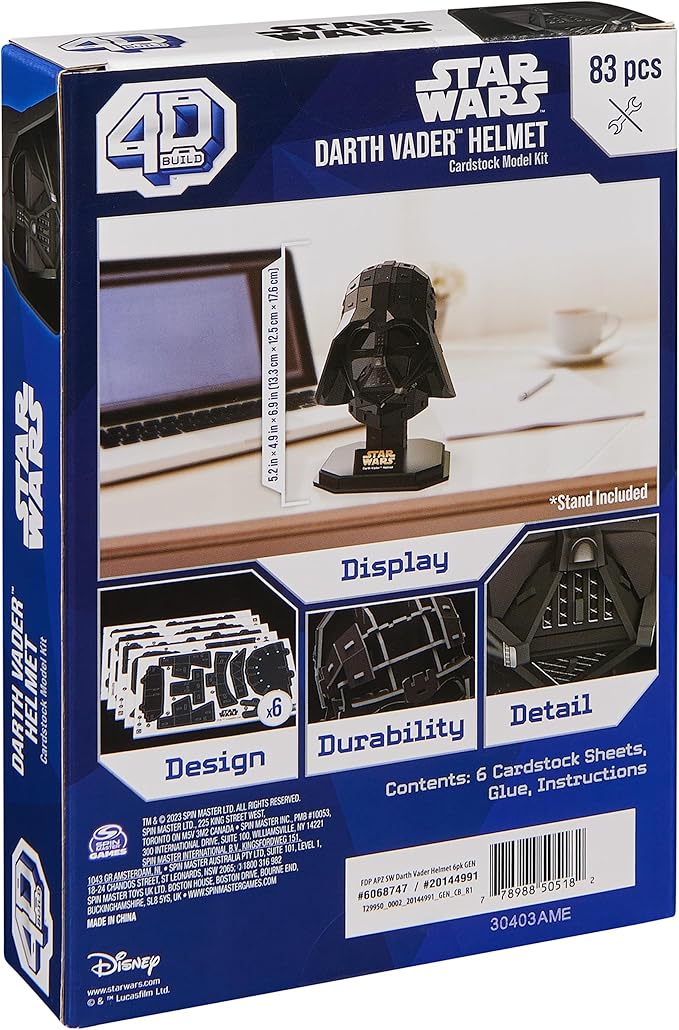 4D Build Star Wars Darth Vader Cardstock 3D Model Kit, Star Wars Gifts, Toys Desk Décor for Fans & Collectors, 83 Pieces, 3D Puzzles, Gift Ideas for Ages 12 & Up