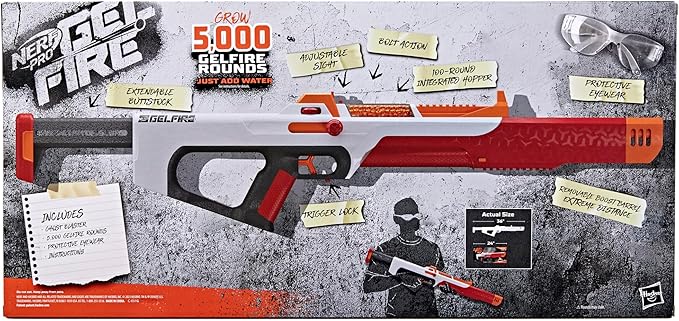 Nerf Pro Gelfire Ghost Bolt Action Blaster, Removable Boost Barrel, 5000 Gel Rounds, 100 Round Integrated Hopper, Eyewear, Ages 14 & Up