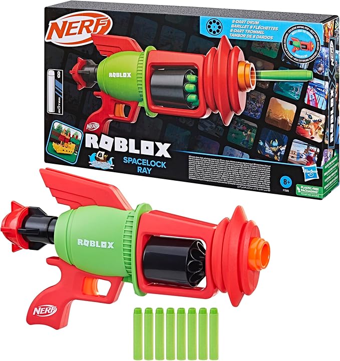 Nerf Roblox Build A Boat for Treasure: Spacelock Ray Blaster, Includes Code to Redeem Exclusive Virtual Item, 8 Elite Darts