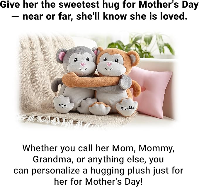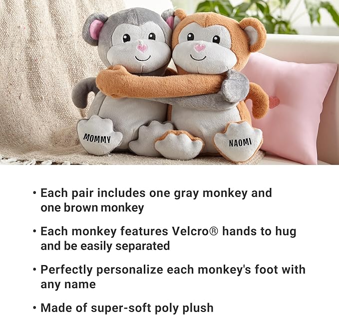 Let's Make Memories Personalized Hugging Plush Monkeys - for Birthday - Monkey Stuffed Animal for Kids - for Boy - for Girl