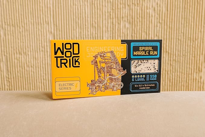 Wood Trick Wooden Marble Run Spiral Electric Motorized - Wooden 3D Puzzles for Adults to Build - 13x13 - Roller Coaster Mechanical Wooden Model Kits for Adults and Teens to Build
