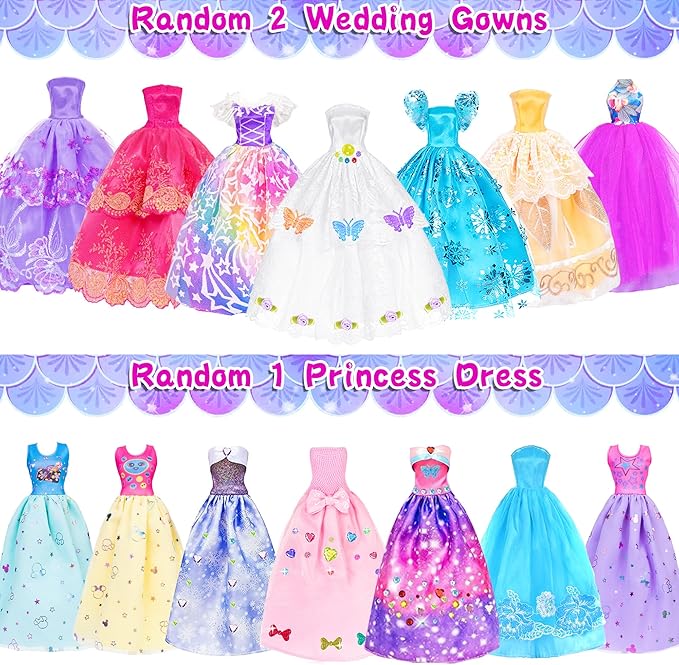 About This Includes: 1 Doll,1 Wardrobe,2 Wedding Dresses,1 Evening Dresses,50 pcs accessories,5 Dresses, 2 Casual Outfits,5 crowns, 6 necklaces, 10... Read more