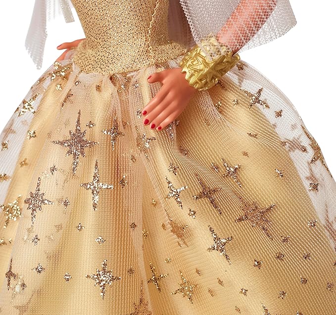 Barbie Signature 2023 Holiday Doll, Light Brown Hair Wearing Golden Gown, Collectible with Doll Stand & Certificate of Authenticity