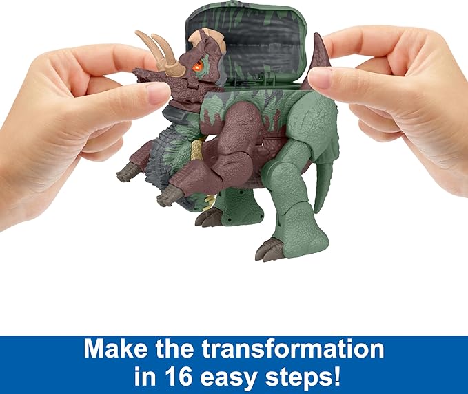 Mattel Jurassic World Fierce Changers 2-in-1 Dinosaur Action Figure, Massive Stretch Toy Transforms from Nasutoceratops to Giganotosaurus in 16 Steps