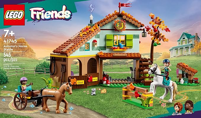 LEGO Friends Autumn’s Horse Stable Building Toys - Horse Toys for Girls & Boys, Ages 7+ - Includes 2 Minifigures, 2 Horses, Carriage, & More - Birthday Gift Idea - 41745