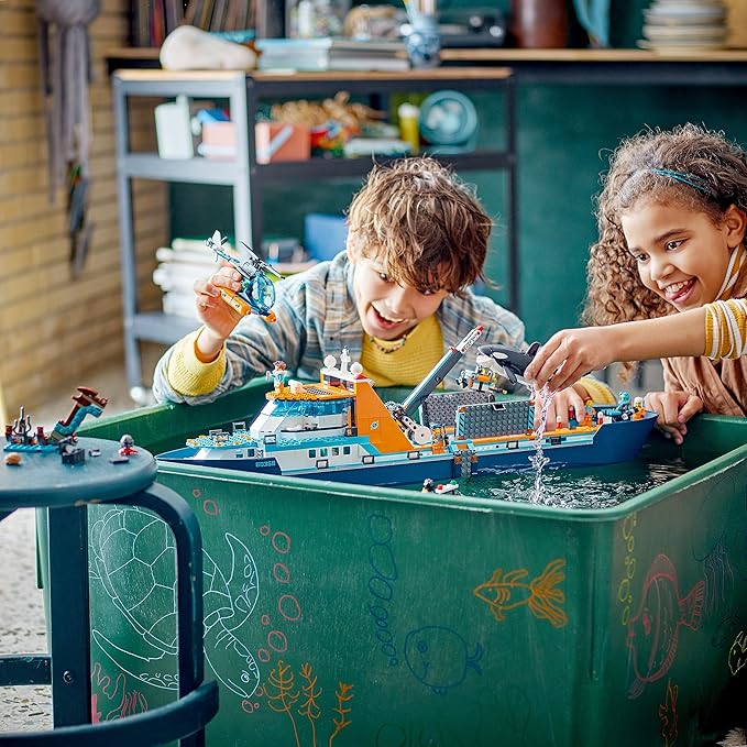 LEGO City Arctic Explorer Ship 60368 Building Toy Set, Fun Toy Gift for 7 Year Old Boys and Girls, with a Floatable Boat, Helicopter, Dinghy, ROV Sub, Viking Shipwreck, 7 Minifigures and an Orca
