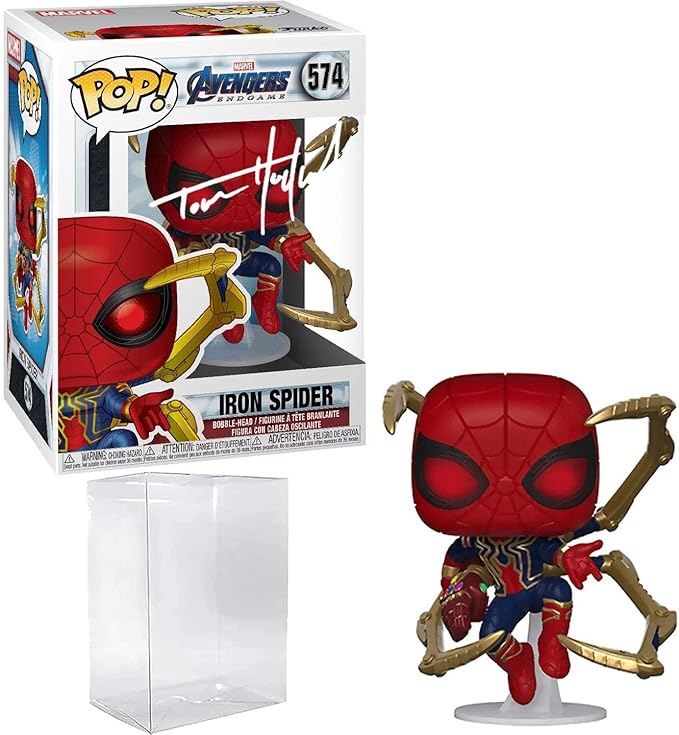 Tom Holland Spiderman Iron Spider #574 Facsimile Signed Reprint Laser Autographed Funko POP! Movies Marvel Endgame Figurine with Protector Case