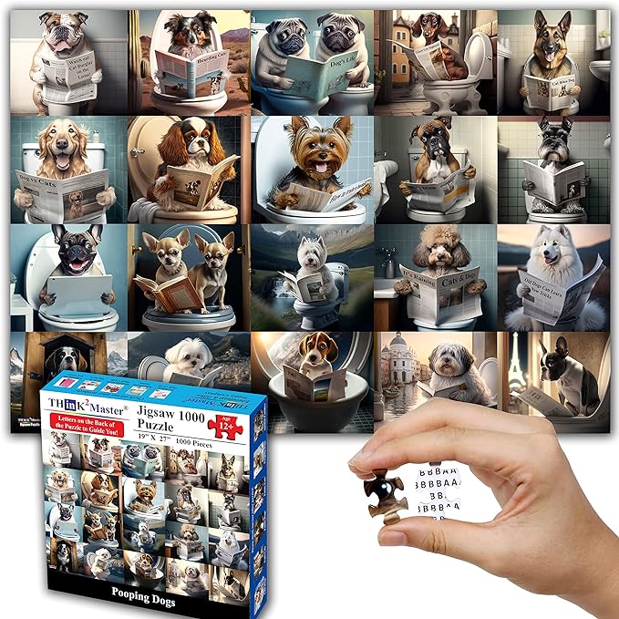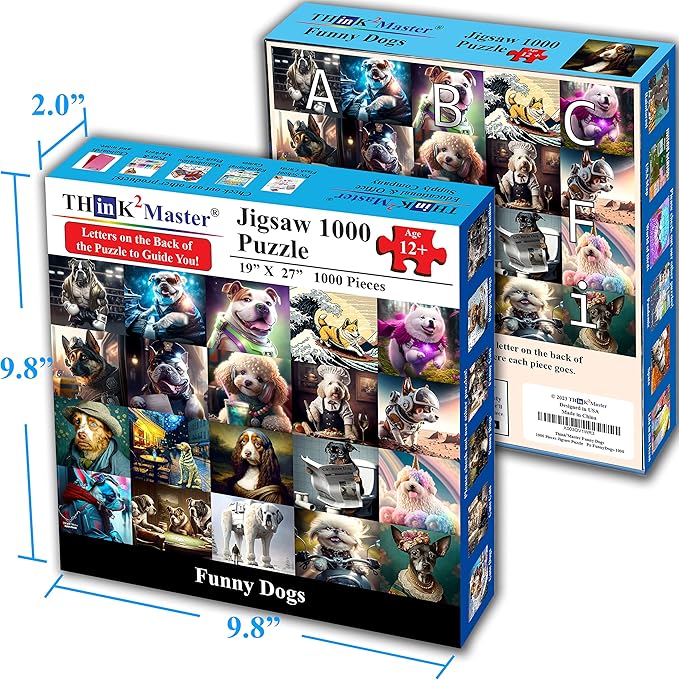Think2Master Funny Dogs 1000 Pieces Jigsaw Puzzle Featuring heartwarming Puppies and Dogs. Fun for Teens, Seniors & Families. Great Gift for Kids Ages 13+ Size: 26.8” x 18.9