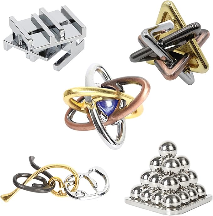 FantasyDay 5 Pcs Brain Teaser Puzzle,Metal Puzzle, Unlock Interlock IQ Test Game, Magic Trick Toy Gift for Kids and Adults