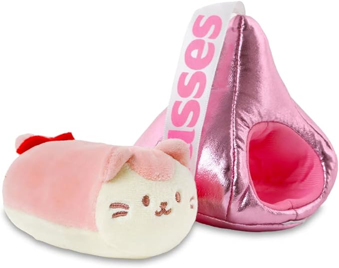 Anirollz Stuffed Animal Plush Toy - Official Hershey Kisses Chocolate Toy Blanket Outfitz Doll | Soft, Squishy, Warm, Cute, Comfort, Safe | Pillow with Kitty - Valentine's Day Gift 4" Kittiroll