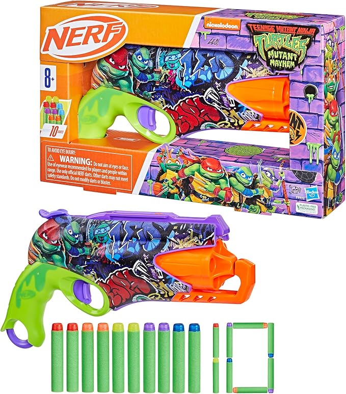 Nerf Teenage Mutant Ninja Turtles Blaster, 10 Elite Darts, Toy Foam Blasters, Ages 8 and Up
