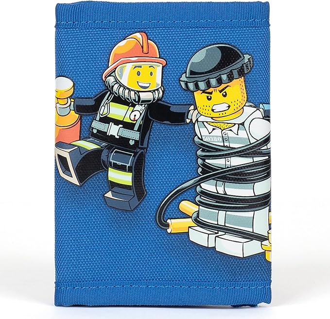 LEGO Trifold Wallet, Kids Unisex Wallet for Boys and Girls, with Clear ID Window, Card and Cash Pockets and Secure Hook and Loop Closure, Police and Fire