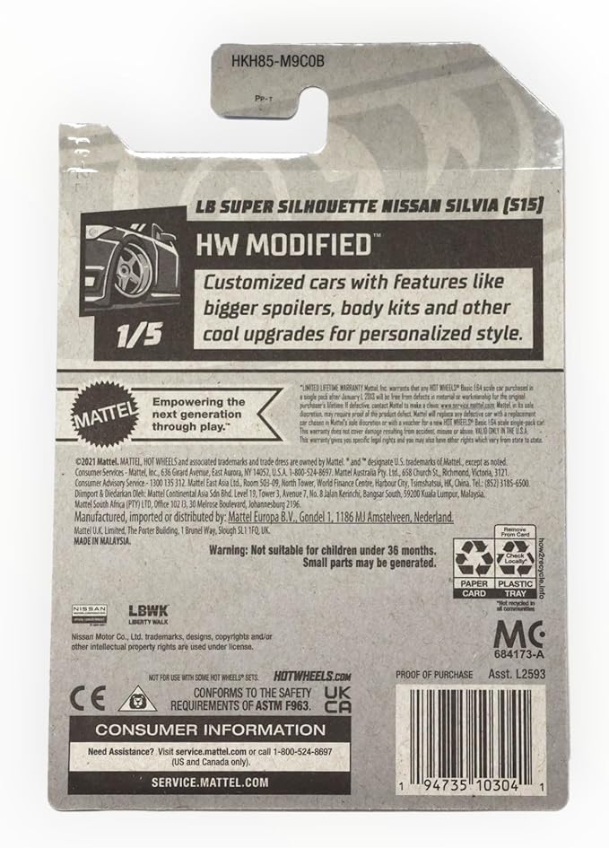 Hot Wheels - LB Super Silhouette Nissan Silvia (S15) - HW Modified 1/5 - Black - 2023 - Mint/NrMint Ships Bubble Wrapped in a Sized Box