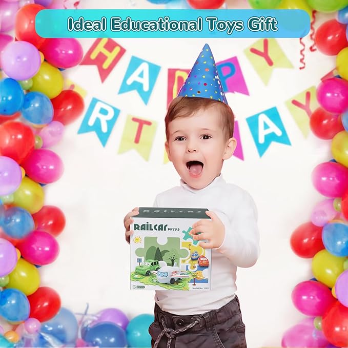 New Plastic Puzzles for Kids Ages 3-5 with A Cute Vehicle, Toddler Puzzle Track Play Set Gift, Critical Thinking Educational Toys, Toys for 3 4 5 6 Year Old Boys Girls