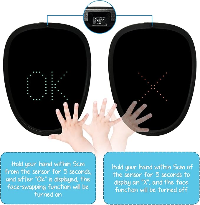 Depointer Life Led Mask with Gesture Sensing,Unisex LED Lighted Face Transforming Mask for Costume Cosplay Party Masquerade
