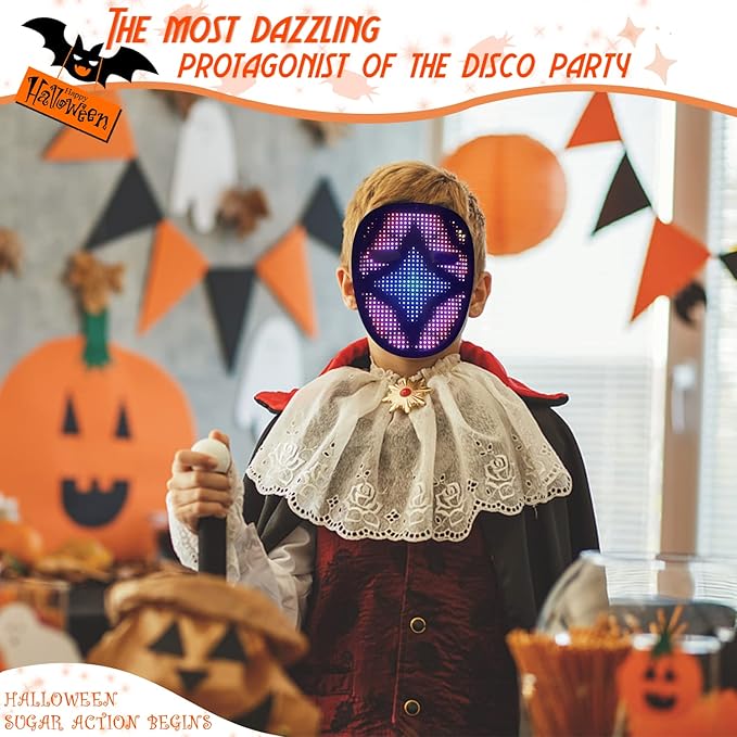 Led Mask with Gesture Sensing,Light up mask for Kids/Men/Women LED Halloween Mask for Costume Cosplay Party