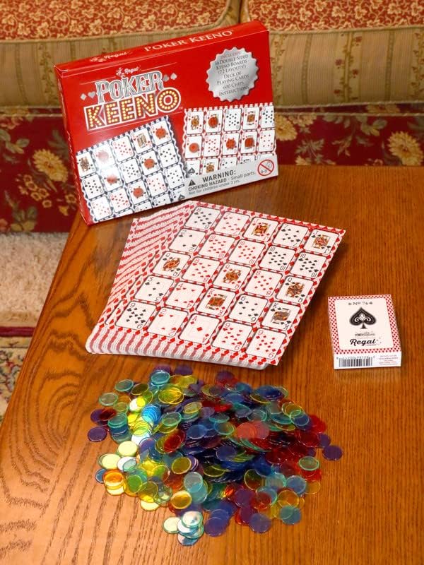 Regal Games - Poker Keeno Bulk Game Set - Includes 36 Two-Sided Boards, 600 Scoring Chips, 1 Deck of Standard Poker Cards - 72 Unique Board Layouts- Casino Night Card Game- Compatible w Poker Keno