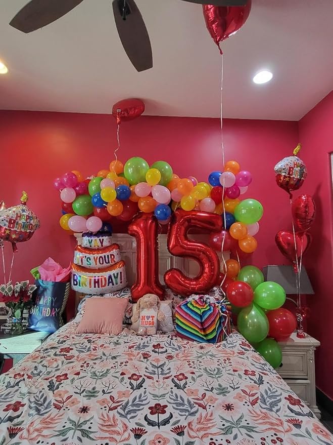 Smlpuame 40 inch Number Balloon 0-9 Red Large Number 15 Balloons,Digital Balloons for Birthday Party Celebration Decorations Supplies, Helium Foil Number Balloons for Wedding Anniversary