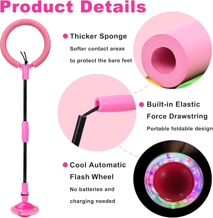 Skip Ball, Portable Foldable Colorful Flash Wheel Swing Ball, Kids Toys for Girls & Boys, Sports Fitness Toys for Kids & Adults. Gifts for Mom Women & Girls Toys Age 5-10 Years