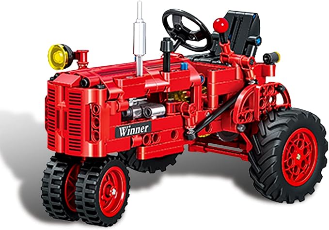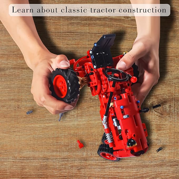 Classic Building Blocks 1/12 Red Tractor Farm Toy Building Set Gift for Kids Ages 6 7 8 9 10 11 12 Includes Shifting Structure, Steering Structure Features (Classic Edition)
