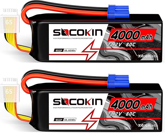 About This ✅🔋【Details for Softcase 6S Lipo Battery】☛Material: Lithium polymer; Battery voltage: 22.2V; Capacity: 4000mAh; Discharge:80C; Plug:EC5; Balanced charging plug:JST-XHR;... Read more